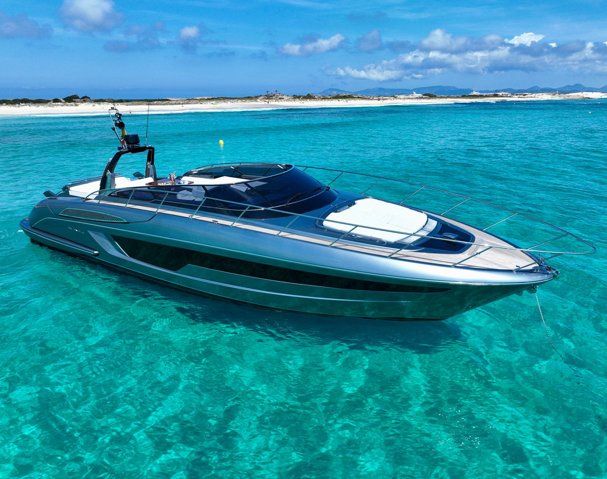 Enjoy the Riva Rivale 56 yacht in Ibiza with Fancy Boats Ibiza. Sail in luxury and elegance—reserve your private yacht trip today!